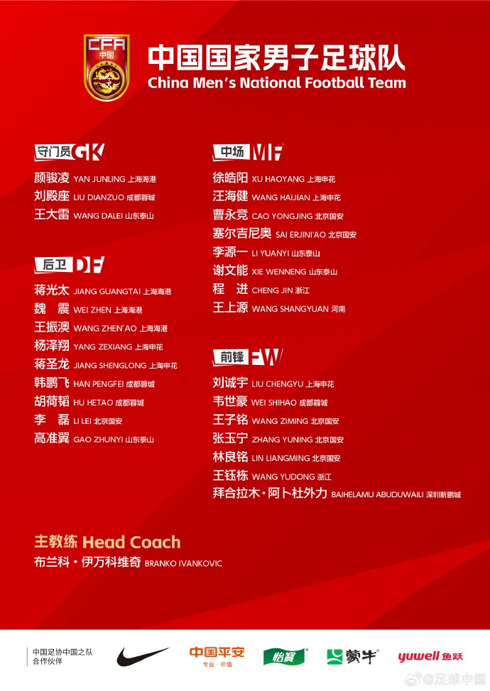 规则规定,中国队本场比赛至多报名23名人。从相关讯息渠道获知,根据球队的训练情况,落选球队本场比赛报名阵容的4名球员分别是来自国青前锋王钰栋、刘诚宇、中场球员程进、边后卫王振澳,归化新人塞尔吉尼奥确定入选。